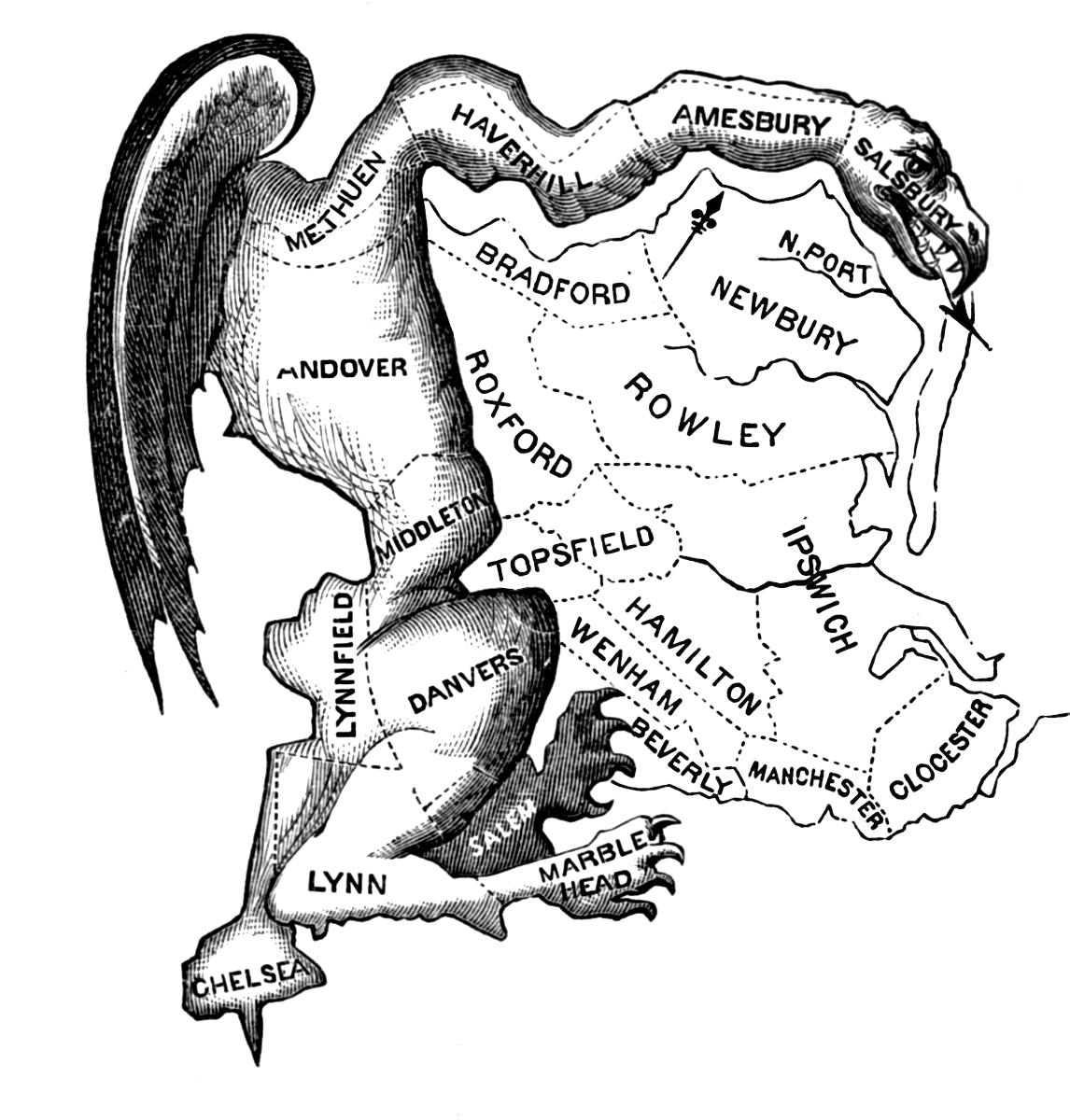 The scheme, however, drew public backlash. That same year, the Boston Gazette published a political cartoon depicting one of the districts in Essex County as a salamander. The Gazette labeled it the “Gerry-mander,” and the name stuck.